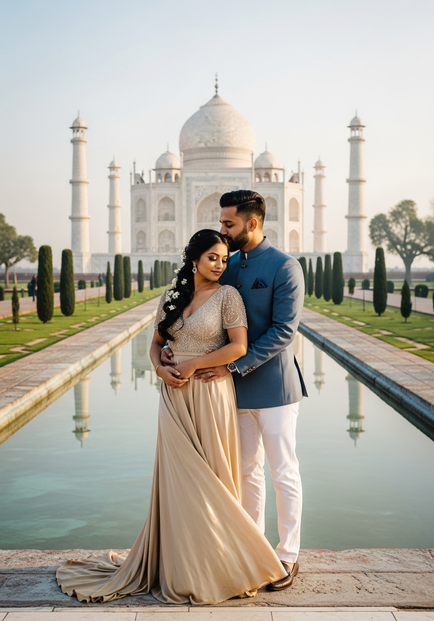 Dream engagement portraits in any setting — from golden beaches to enchanted gardens — crafted in minutes, not months.